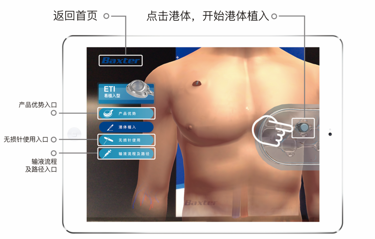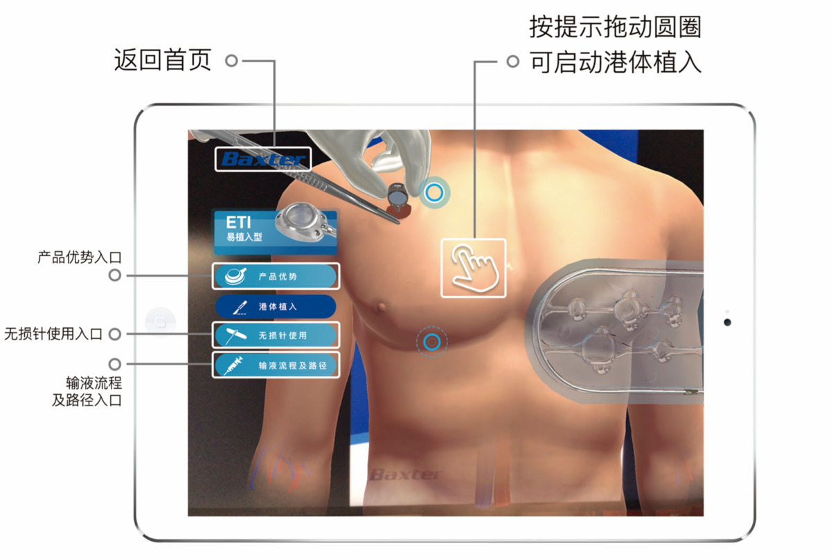 百特中国Baxter与畅络数字Changluo Digital合作,为旗下的Healthport输液港定制AR应用程序。